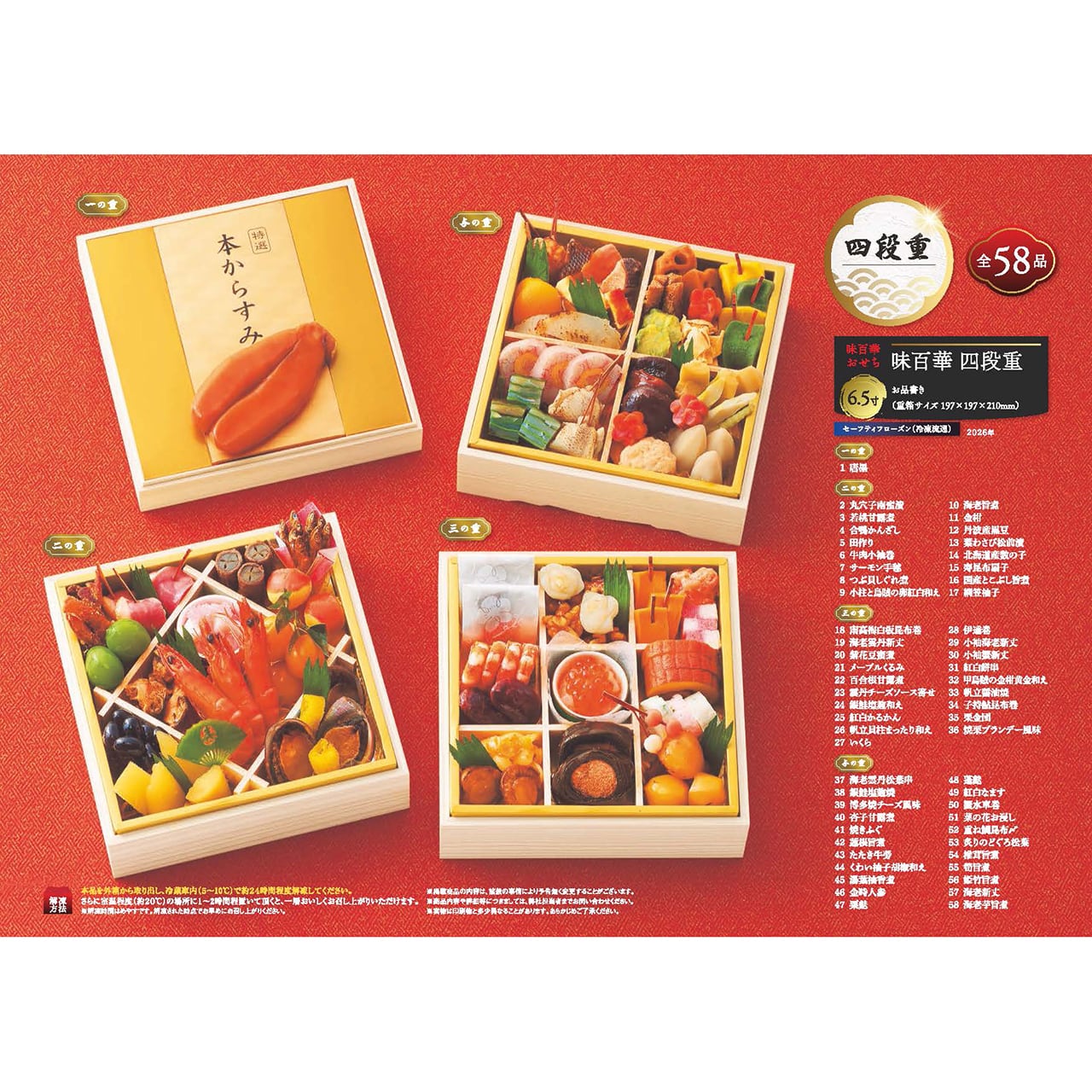 【おせち料理】味百華 おせち 四段重【58品目】【3〜4人前】【ご予約の受付は12/10まで】【送料無料】【ギフト プレゼント 贈り物 贈答品 誕生日 お祝い 内祝い 結婚祝い 出産祝い 快気祝い 景品】【ハロウィン お歳暮】